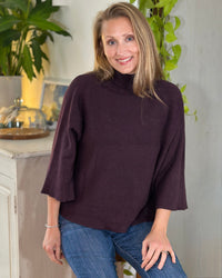 - Roll Neck Ribbed Jumper - Plum
