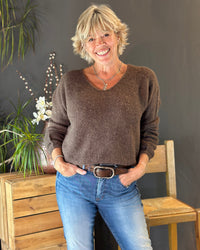 Sold out - V-Neck Long Sleeve Jumper - Chocolate
