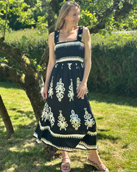 Sold out - Bold Leaf Print Strap Dress - Black(1)