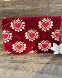 Sold out - Embroidered Enchanted Hearts Velvet Make Up Bag - Red