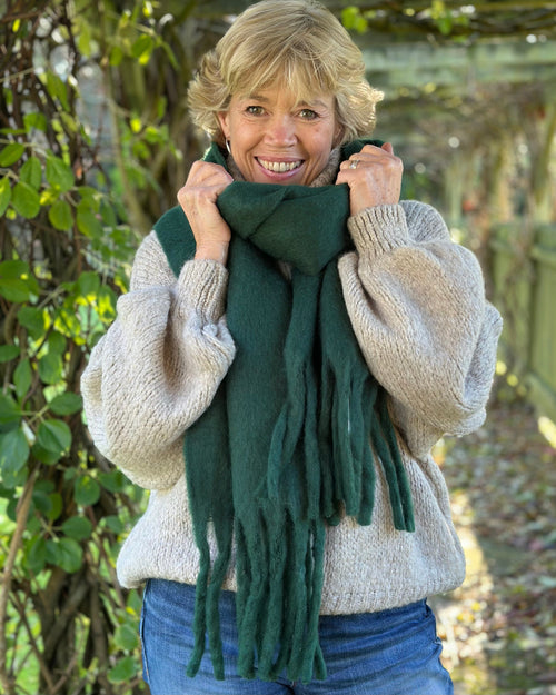 Just what you need for the winter - A cosy woolly feel scarf to keep off the chilly weather! In this attractive multi striped print - this one is large enough to wear as a wrap or wrapped round the neck. It's a bit like a cosy blanket with gorgeous long tassels either end.