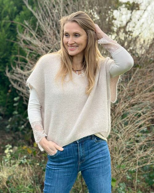 A luxurious soft mohair knit v-neck tank top with drop shoulders and fine ribbed hemline finishes hemline. Beautifully soft and cozy warm. This seasons style is all about layering so wear with a crisp white shirt or one of our lace detail fine knit jumpers underneath and jeans for a warm casual look. Or dress it up with a sparkly cami and a tulle pleated skirt.