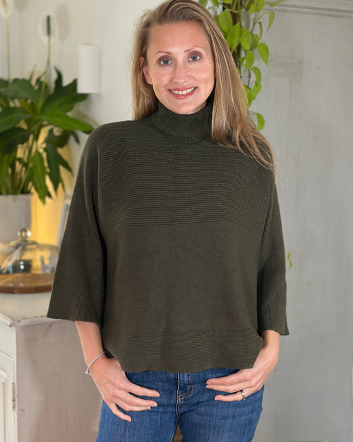 Roll Neck Ribbed Jumper - Khaki