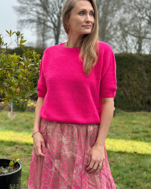 Round Neck Short Sleeve Jumper - Bright Fuchsia