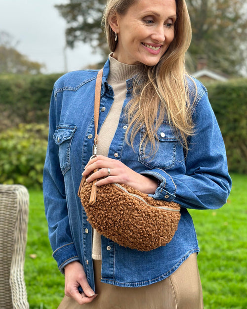 This fun soft teddy sheering bum bag is perfect for keeping hands free and your essentials safe. Great for days out walking, festivals or when you don't want the burden of carrying a handbag. Wear around the waist, over the shoulder or draped crossbody.