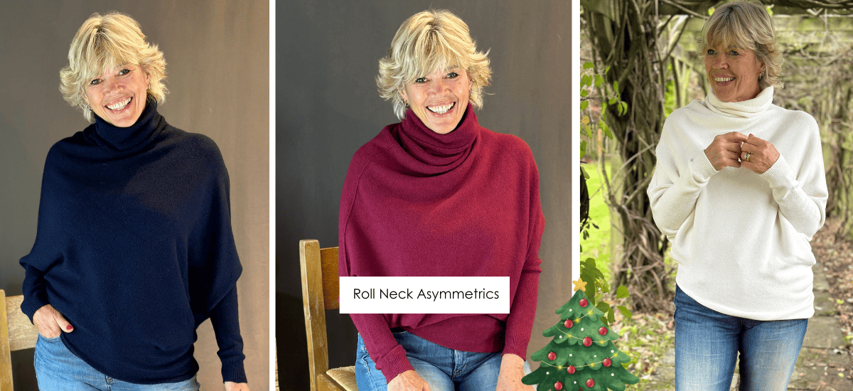 Our Asymmetric Draped Roll Neck Jumper blends our signature asymmetric silhouette with a soft, cosy roll neck for effortless everyday style. Flattering, Italian-made and perfect for layering, it’s a modern knitwear essential for autumn and winter.